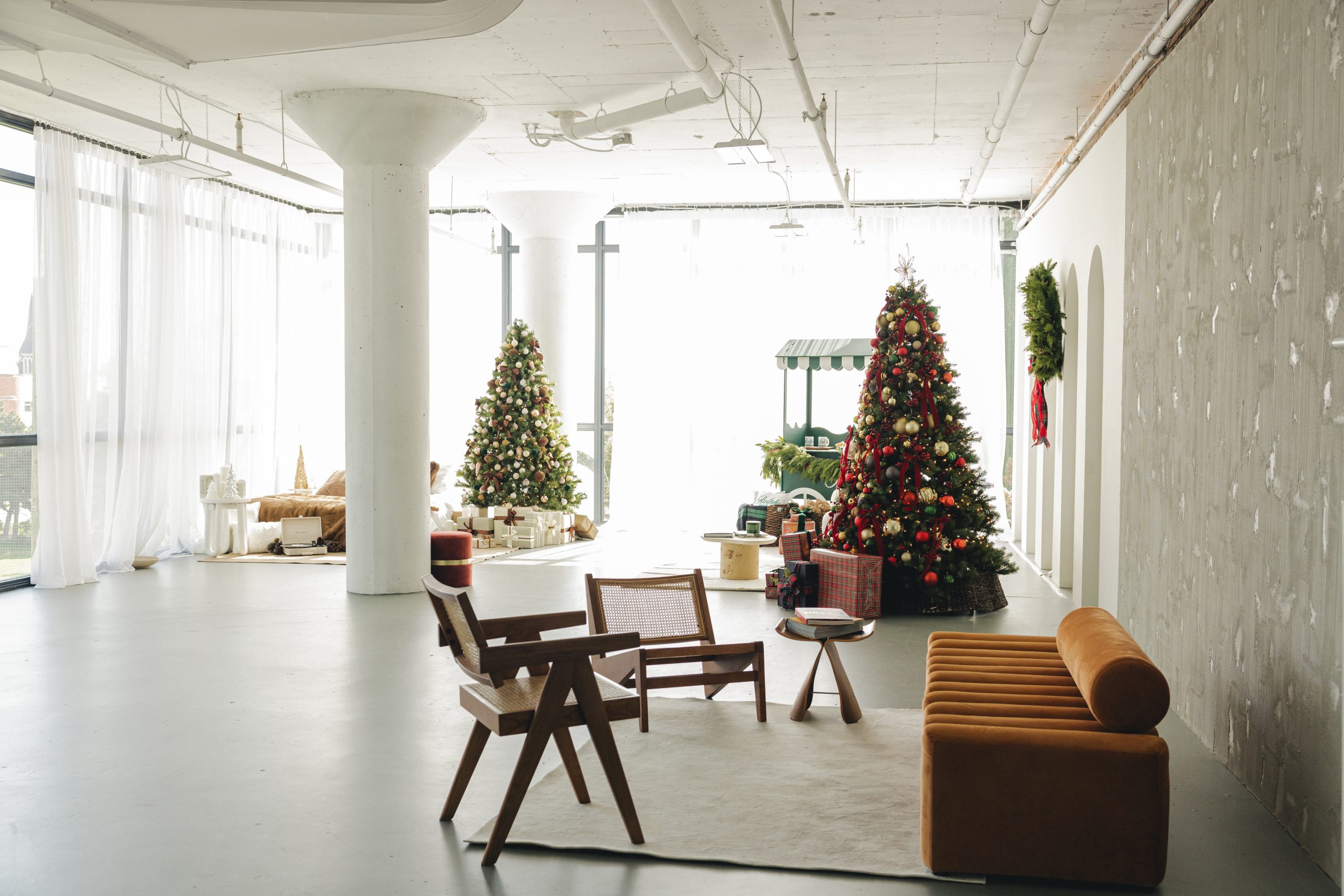 From October 1st to December 31st, 2025, we will have a Christmas installation set up near the arches and the bedroom corner. All of our other non-holiday walls — the beige accent wall, the white board, and the accent wall — will remain unchanged.