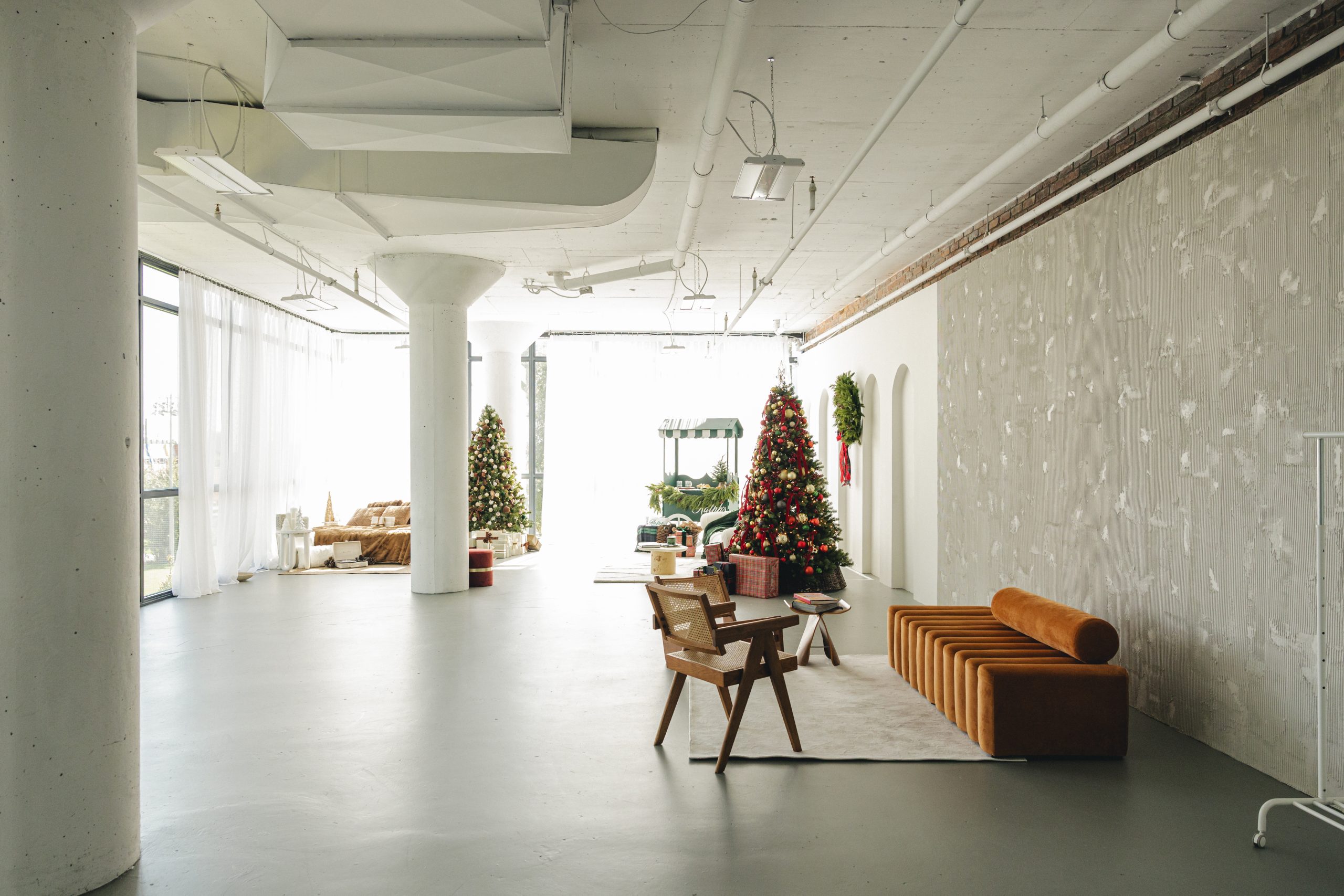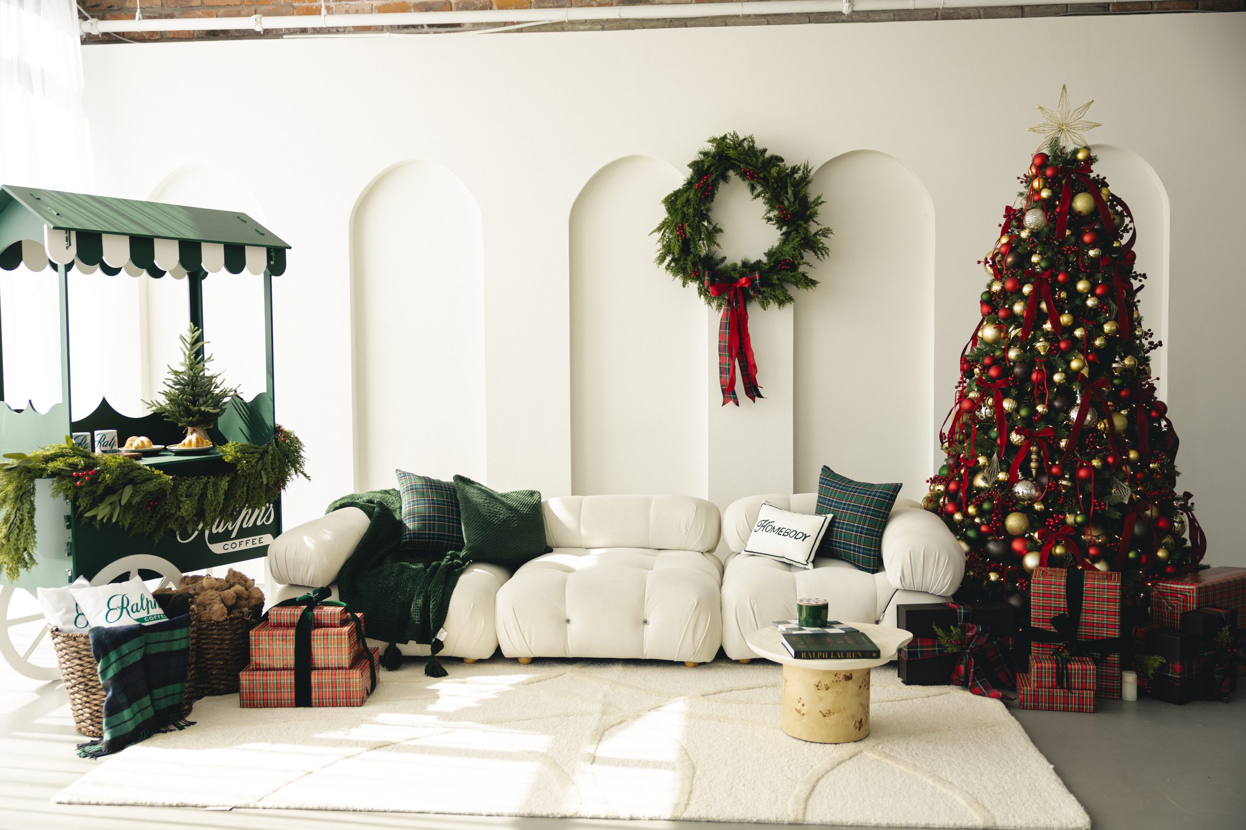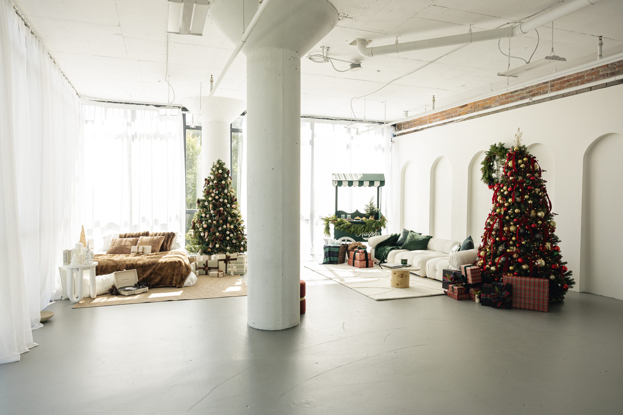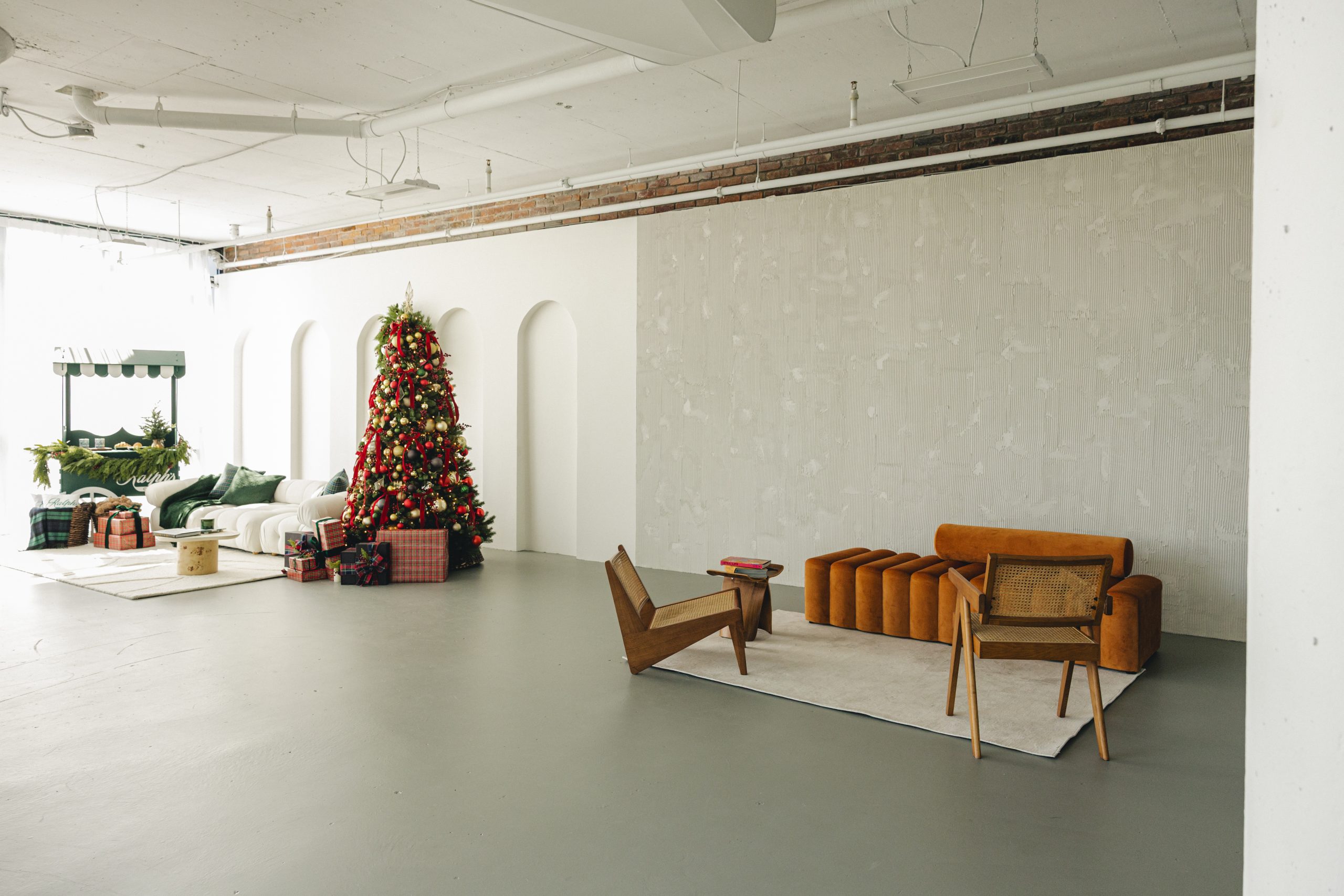From October 1st to December 31st, 2025, we will have a Christmas installation set up near the arches and the bedroom corner. All of our other non-holiday walls — the beige accent wall, the white board, and the accent wall — will remain unchanged.