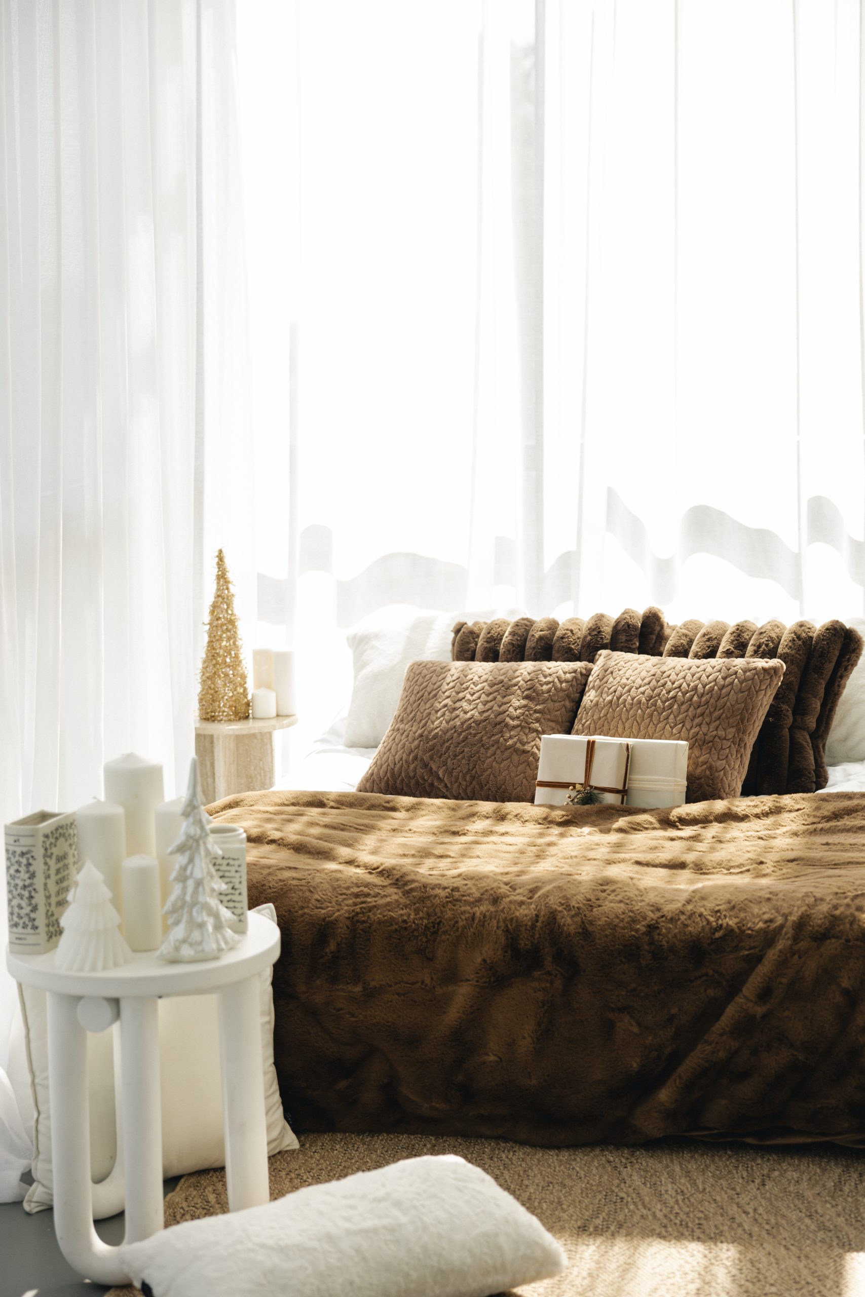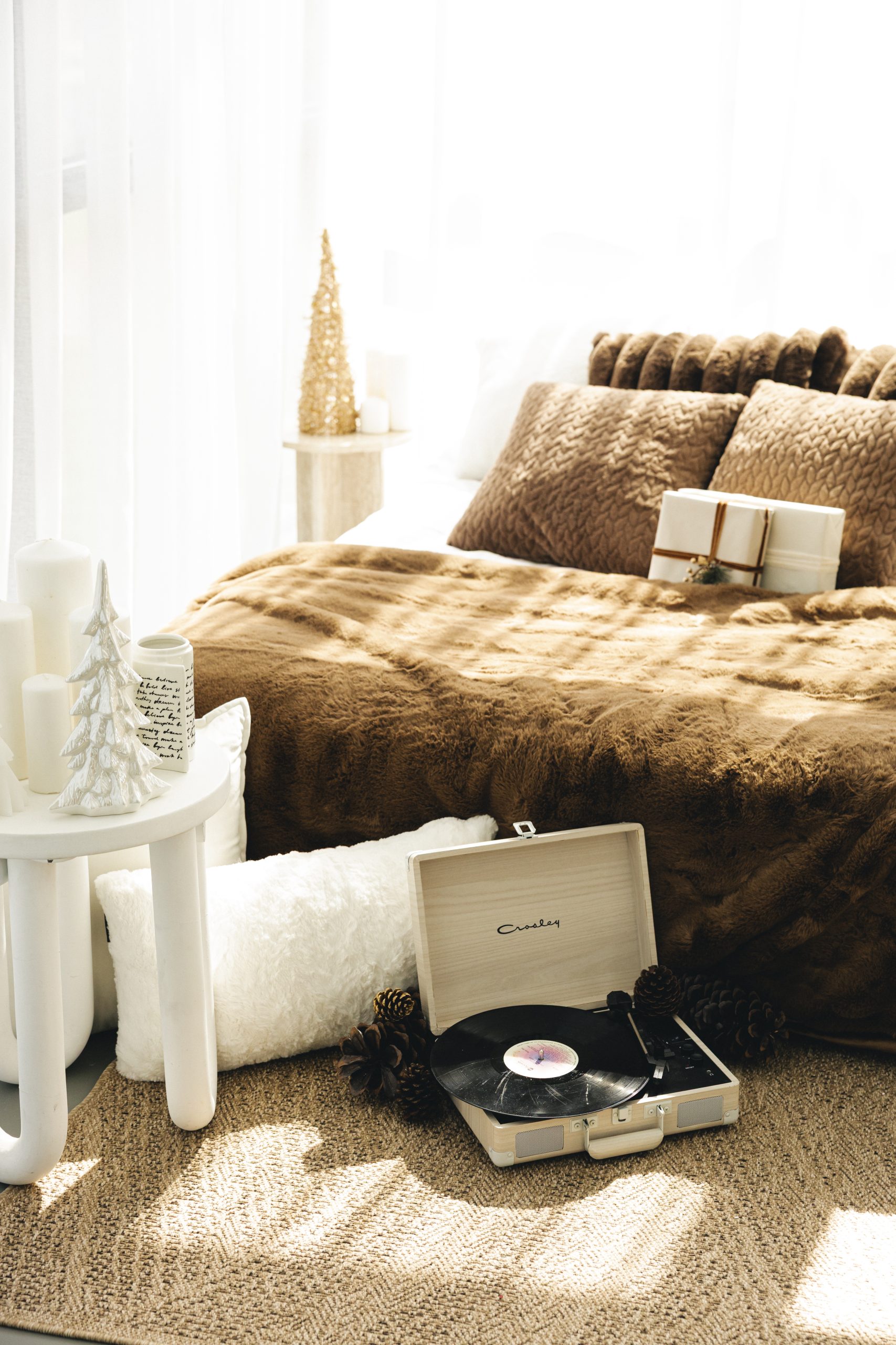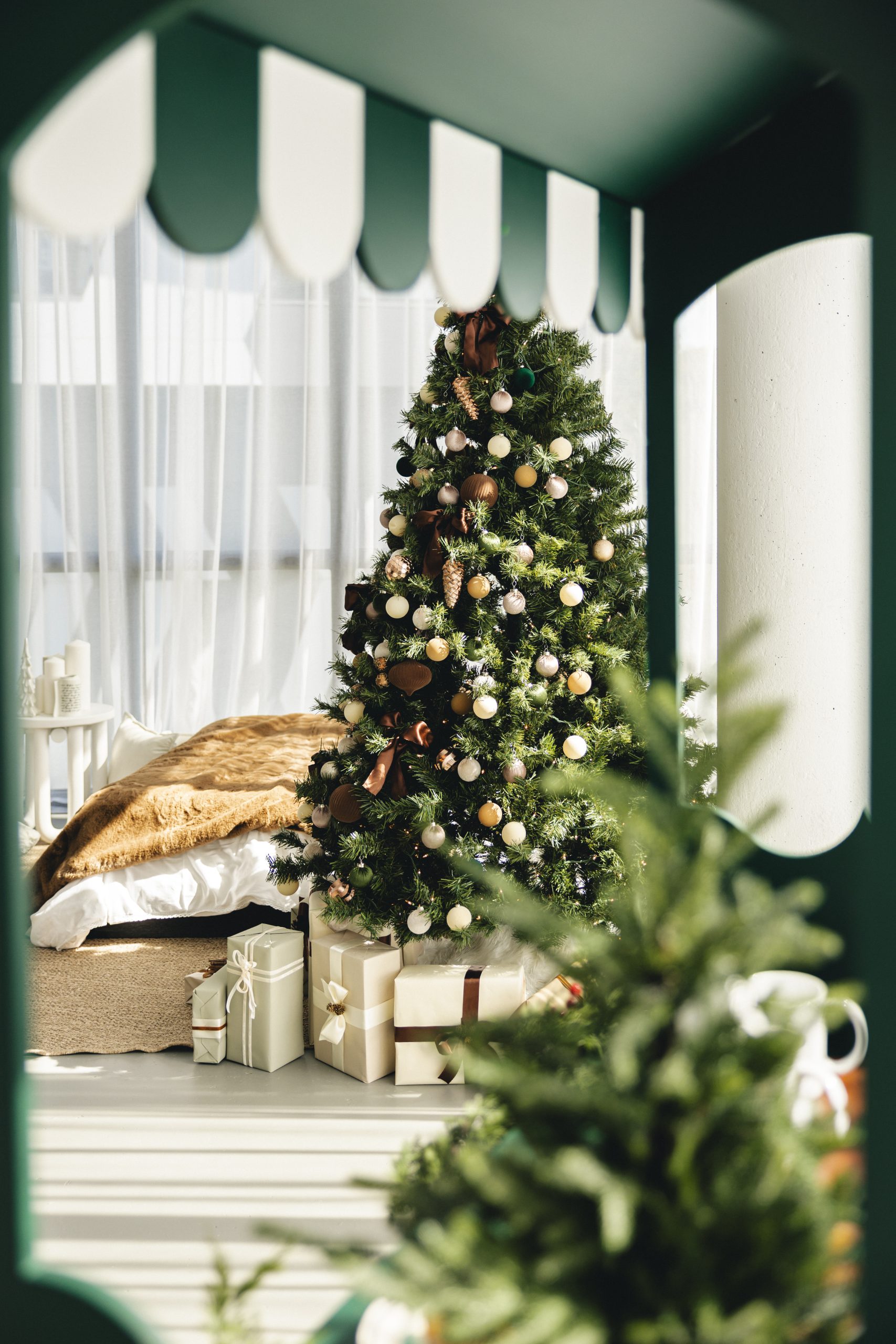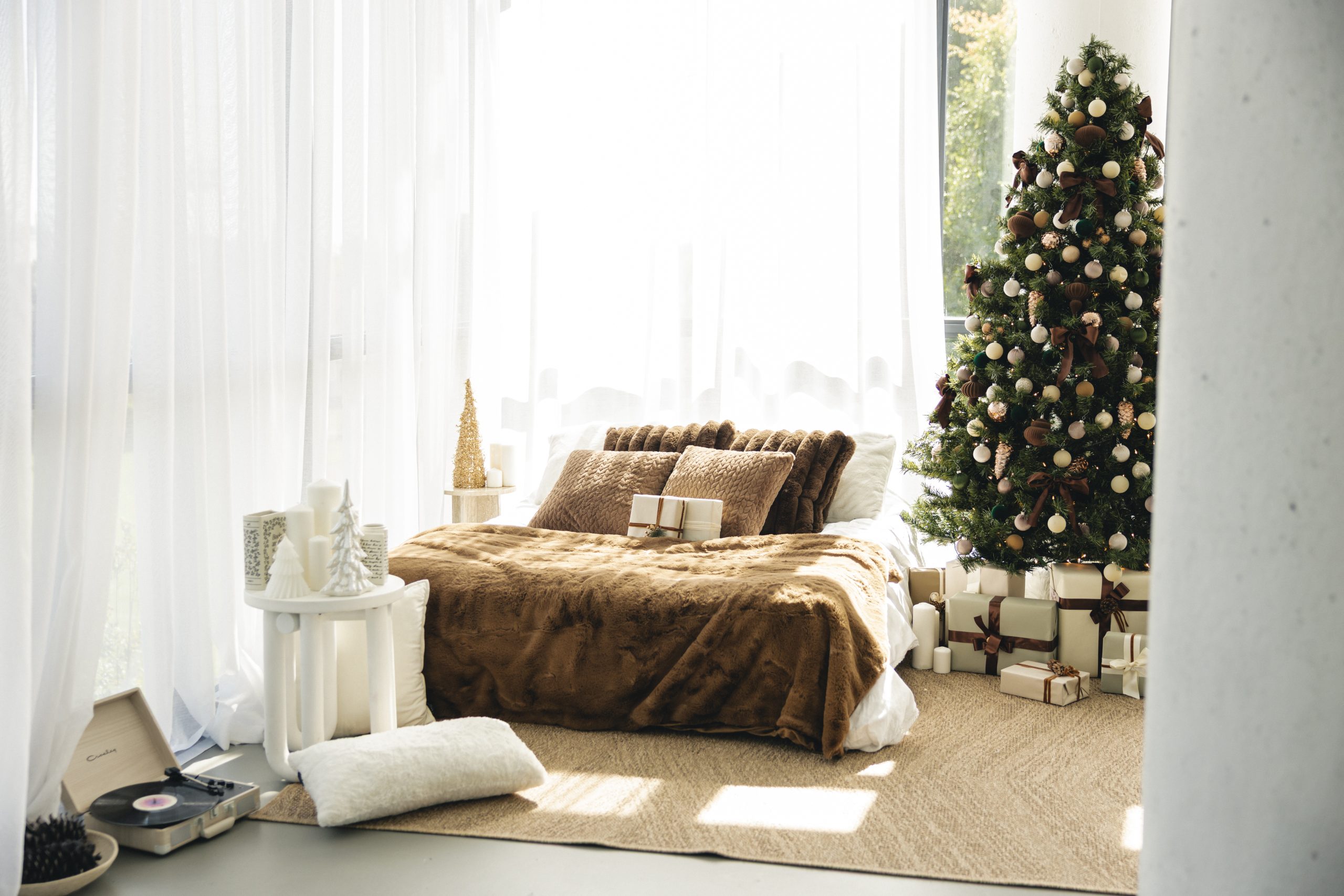 From October 1st to December 31st, 2025, we will have a Christmas installation set up near the arches and the bedroom corner. All of our other non-holiday walls — the beige accent wall, the white board, and the accent wall — will remain unchanged.