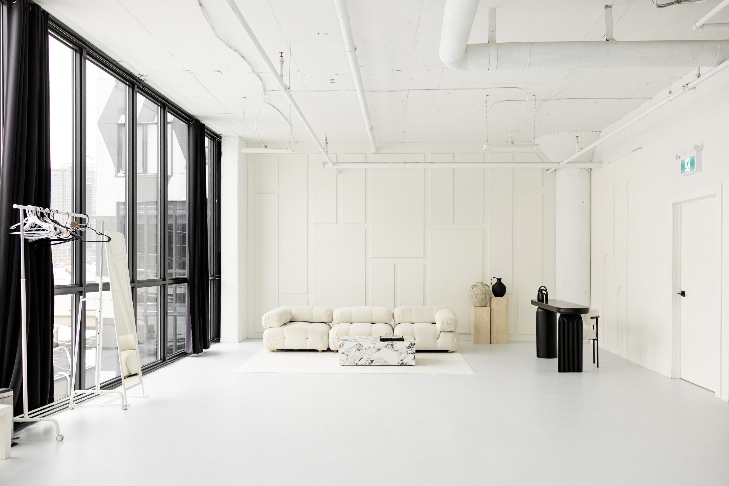 Our White Room Studio is a haven for photographers, videographers, and creative professionals seeking a backdrop that exudes sophistication and versatility. With abundant natural light, modern charm, and minimalist decor, our studio provides a blank canvas for your artistic vision. Designed to cater to a range of creative pursuits, our White Room Studio is perfect for fashion editorials, product photography, artistic portraits, and more. You’ll have access to top-of-the-line photography gear to enhance your creative process, whether you’re a seasoned professional or an aspiring artist, our studio is equipped to meet your needs.