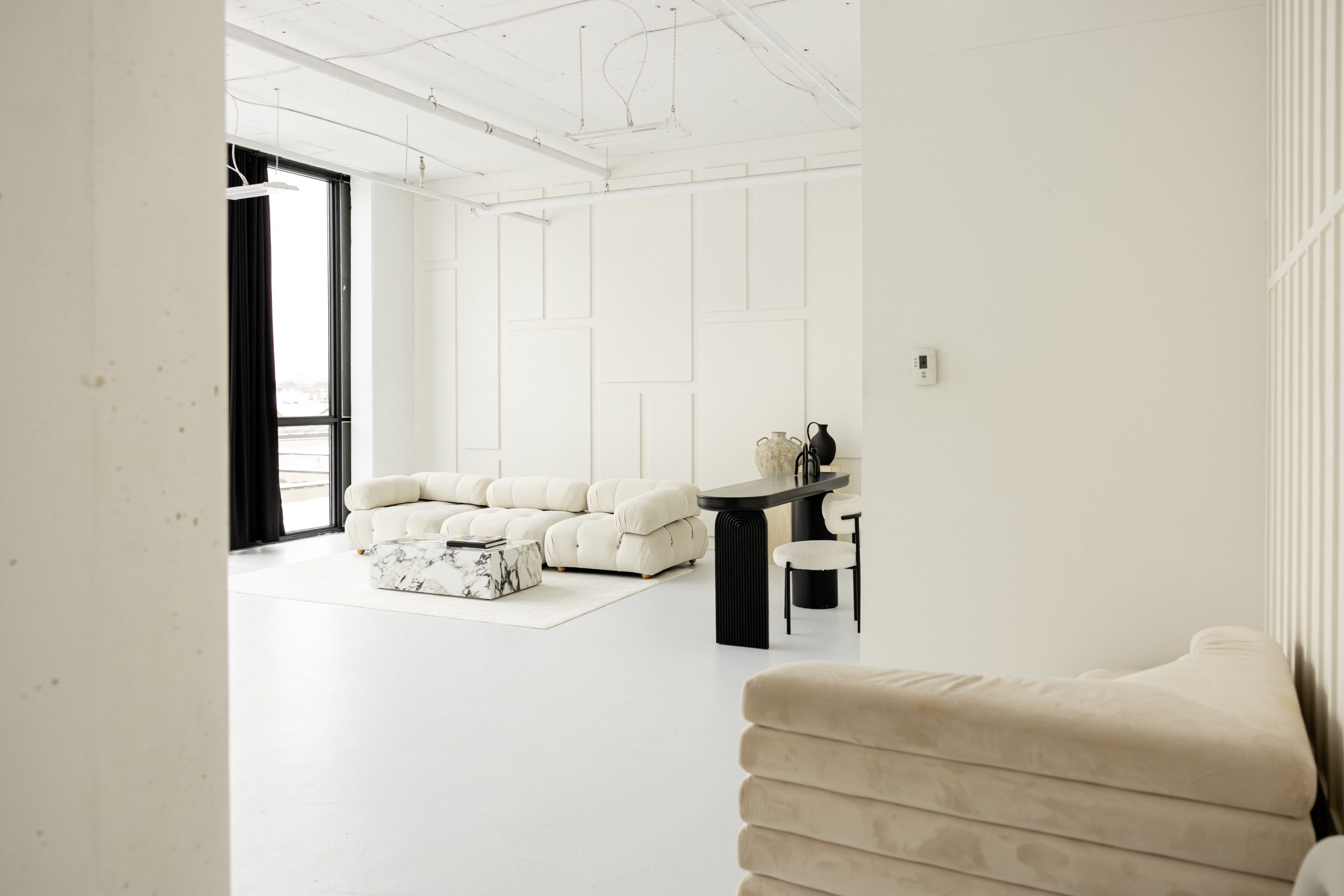 An elegant and sophisticated studio, featuring crystal white walls and an abundance of natural lighting designed to illuminate your subject.